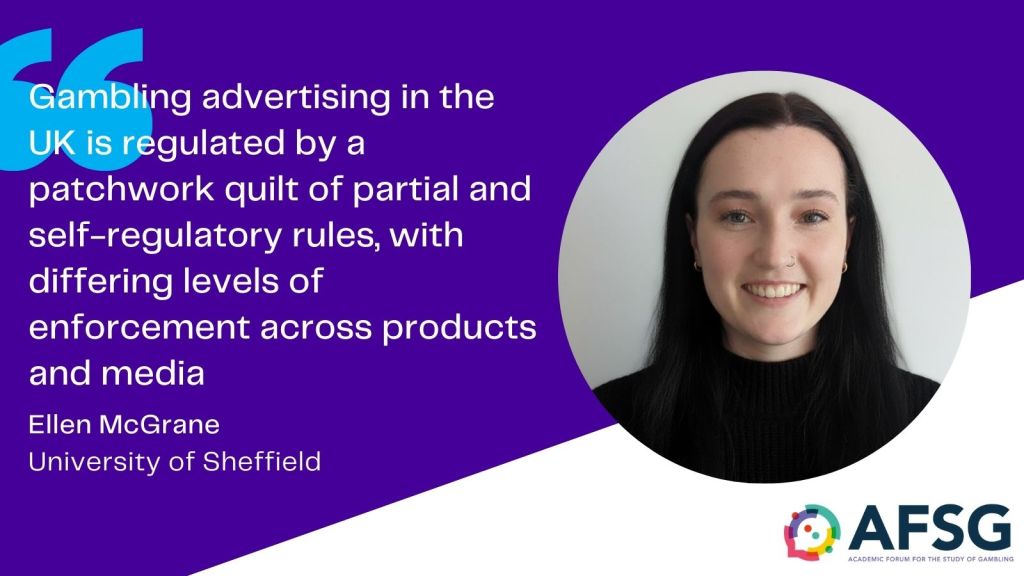 In this month’s Member Spotlight, we caught up with Ellen McGrane, Research Associate in Alcohol and Public Health in the Sheffield Addictions Research Group at the University of Sheffield. Although currently working on alcohol and public health, Ellen’s recent PhD examined television gambling advertising and live sports. When it came to choosing her PhD topic, she was keen to work on an area that had relevance to contemporary policy, while also applying methodological approaches of interest, such as natural experiments, which remain underutilised in gambling research. Gambling advertising and harms stood out as an area of emerging public health interest that was less well understood or researched compared to alcohol and tobacco. In this month’s interview, we discuss the whistle-to-whistle ban, self-regulation in gambling advertising and the challenges of data collection and natural experiments in gambling research.